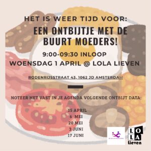 Om de week op woensdag vanaf 09:00 uur, na het wegbrengen van de kinderen naar school, ben je welkom bij Lola Lieven Buurtmoeders Ontbijt – Lola Lieven 🥐☕